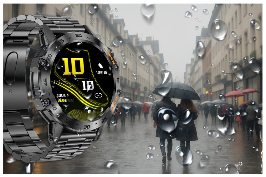 Good equipment should keep up with its owner, which is why the smartwatch has an IP67 waterproof rating. The smartwatch is resistant to light splashes and gentle contact with water. The smartwatch is also resistant to mild dust and atmospheric dust. The smartwatch cannot be dived, jumped into water, used in a sauna or exposed to salt, hot or icy water.