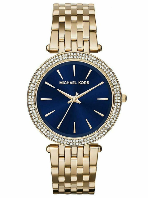 Zegarek Damski Michael Kors MK3406 to stylowy, klasyczny model dla każdej kobiety. Zegarek ten został wykonany w całości ze stali szlachetnej w kolorze złotym z granatową tarczą, co gwarantuje wieloletnią odporność na zniszczenie. Za niezawodne działanie urządzenia odpowiada dokładny mechanizm kwarcowy zasilany baterią.