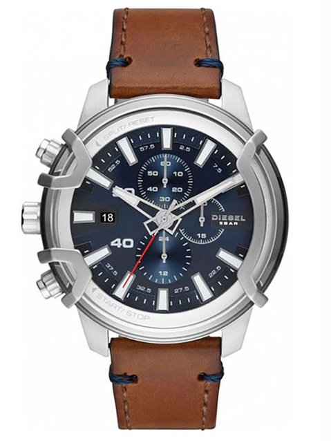 Zegarek Diesel Griffed DZ4518 to wybór dla mężczyzn, którzy cenią sobie eleganckie akcenty na skórzanym brązowym pasku. Jego elegancka konstrukcja obejmuje okrągłą kopertę ze stali nierdzewnej, odpornej na korozję, a także analogowy cyferblat chroniony szkiełkiem mineralnym. Na tarczy znajdziesz datownik oraz subtarcze dla chronografu. Koronka i przyciski do obsługi funkcji komplikacji znajdują się po lewej stronie koperty. Z wodoodpornością na poziomie 50 metrów zegarek jest odporny na zachlapania, co zapewnia ochronę mechanizmu kwarcowego.