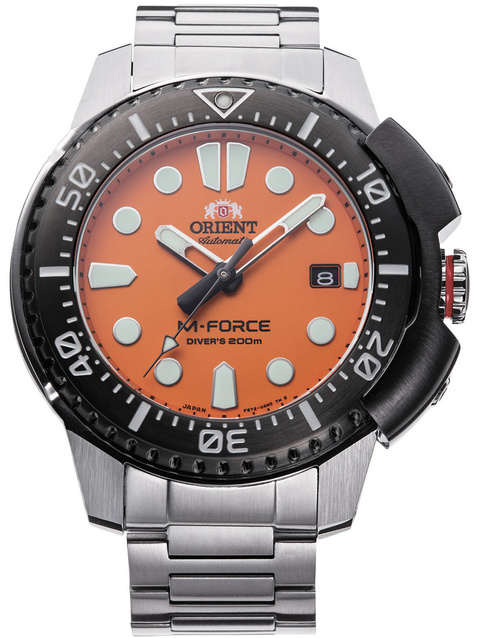 Zegarek Orient Orient Sport M-Force Automatic RA-AC0L08Y00B to klasyczny elegancki i jednocześnie sportowy zegarek. Czasomierz działa w oparciu o niesłychanie dokładny japoński mechanizm z automatycznym naciągiem. Na pomarańczowej tarczy chronionej szafirowym szkłem umieszczono datowniki.