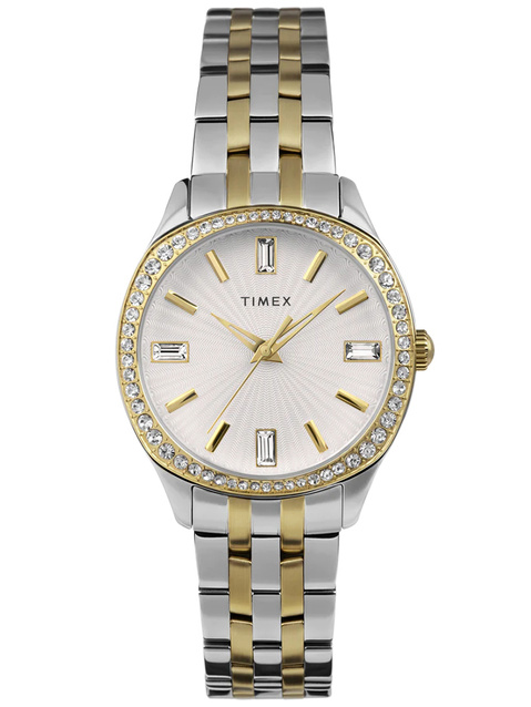 Elegancki damski zegarek Timex ARIANA TW2W17700 pasuje idealnie do codziennych stylizacji, jak i na bardziej uroczyste okazje. Na białej czytelnej tarczy umieszczono datownik i dni tygodnia. Model ten jest w kolorze srebrno-złotym, zarówno jego bransoleta jak i koperta wykonana z wysokiej jakości stali szlachetnej. Klasa wodoszczelności zegarka to WR50.