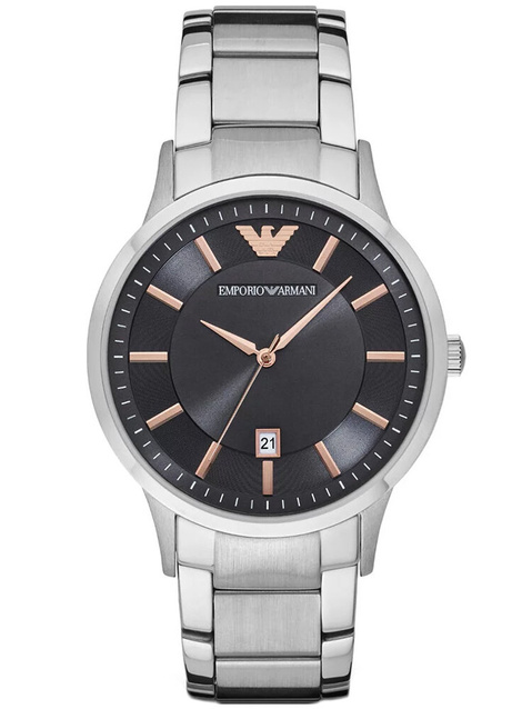 Męski zegarek Emporio Armani Renato AR2514 to klasyczny męski zegarek, idealny zarówno do eleganckiego ubioru, jak i do noszenia na co dzień. Koperta oraz bransoleta zostały wykonana ze stali szlachetnej, co gwarantuje jej wieloletnią odporność na zniszczenie. Na czarnej tarczy zabezpieczonej mineralnym szkłem znajdziemy datownik wskazujący dzień miesiąca.